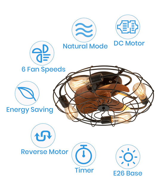 Caged Ceiling Fans with Lights and Remote