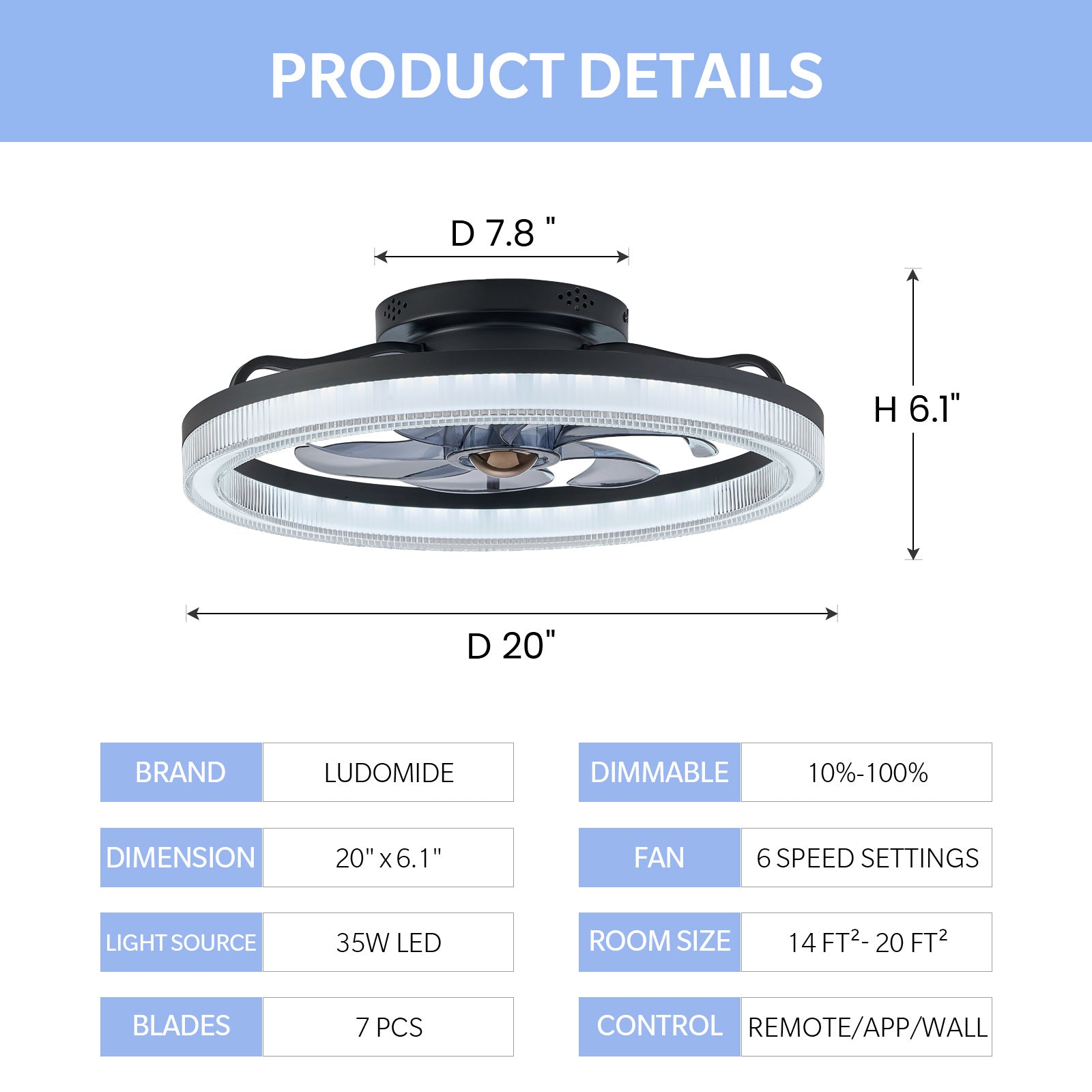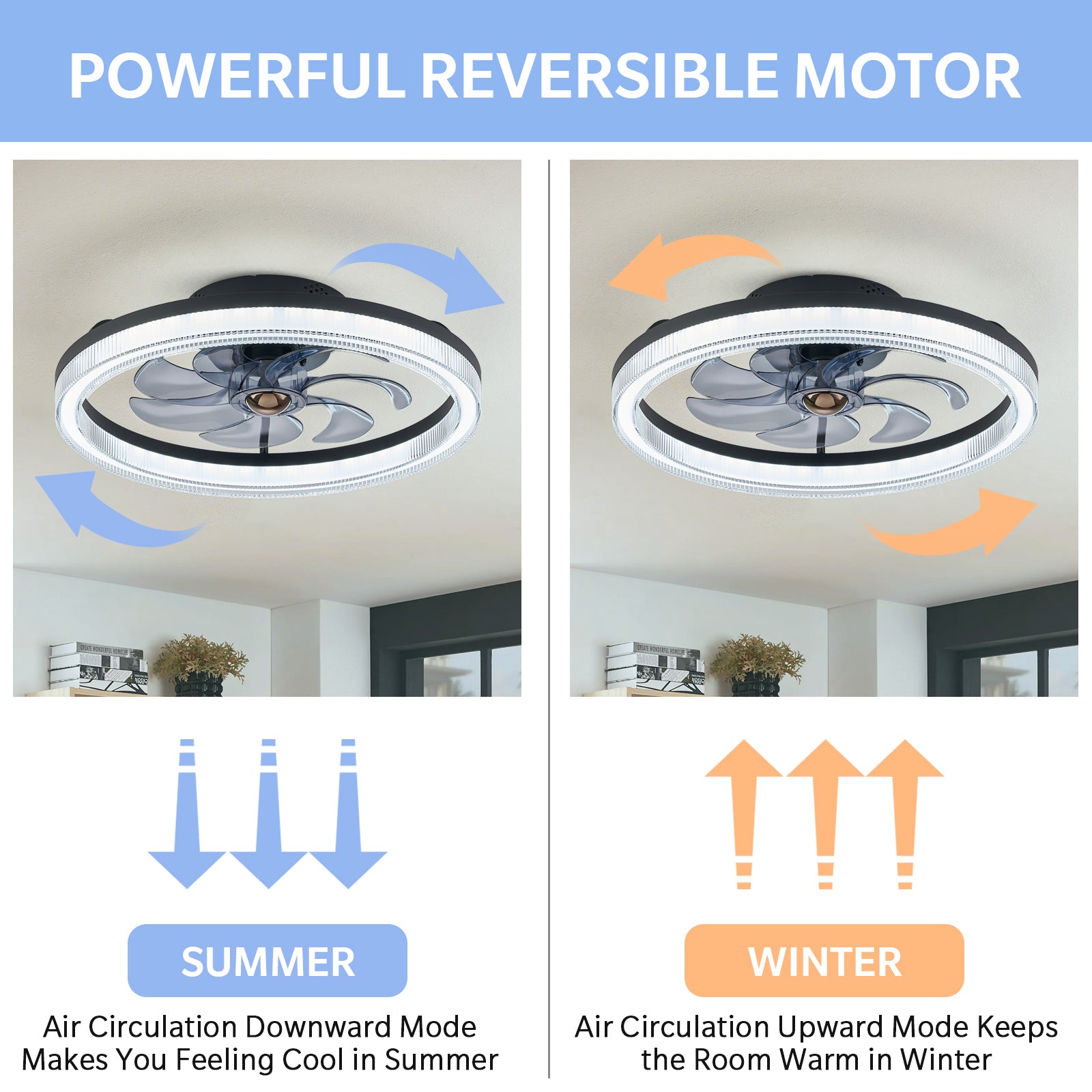 - 【Reversible Quiet Motor】The low profile ceiling fan with light has DC reversible motor and 7 blades, keeping the blades running smoothly, with more uniform airflow and without noise, 30dB low noise provides ideal quiet environment. Conveniently switch between downdraft and updraft modes in different seasons control with the remote or APP.