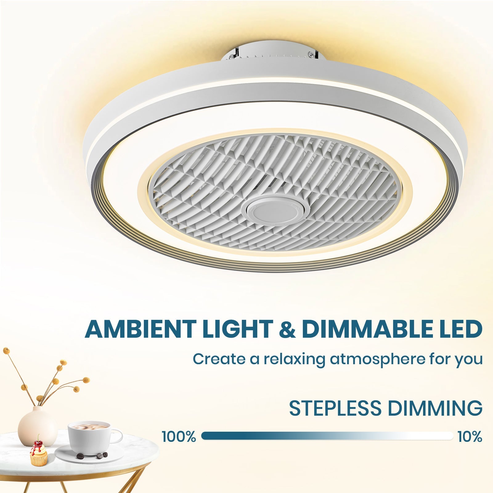- 【Modern Ceiling fan】This bladeless ceiling fan combines an adjustable LED light ring that illuminates the style of your space while providing low-noise cooling. With a stylish design perfect for any room.