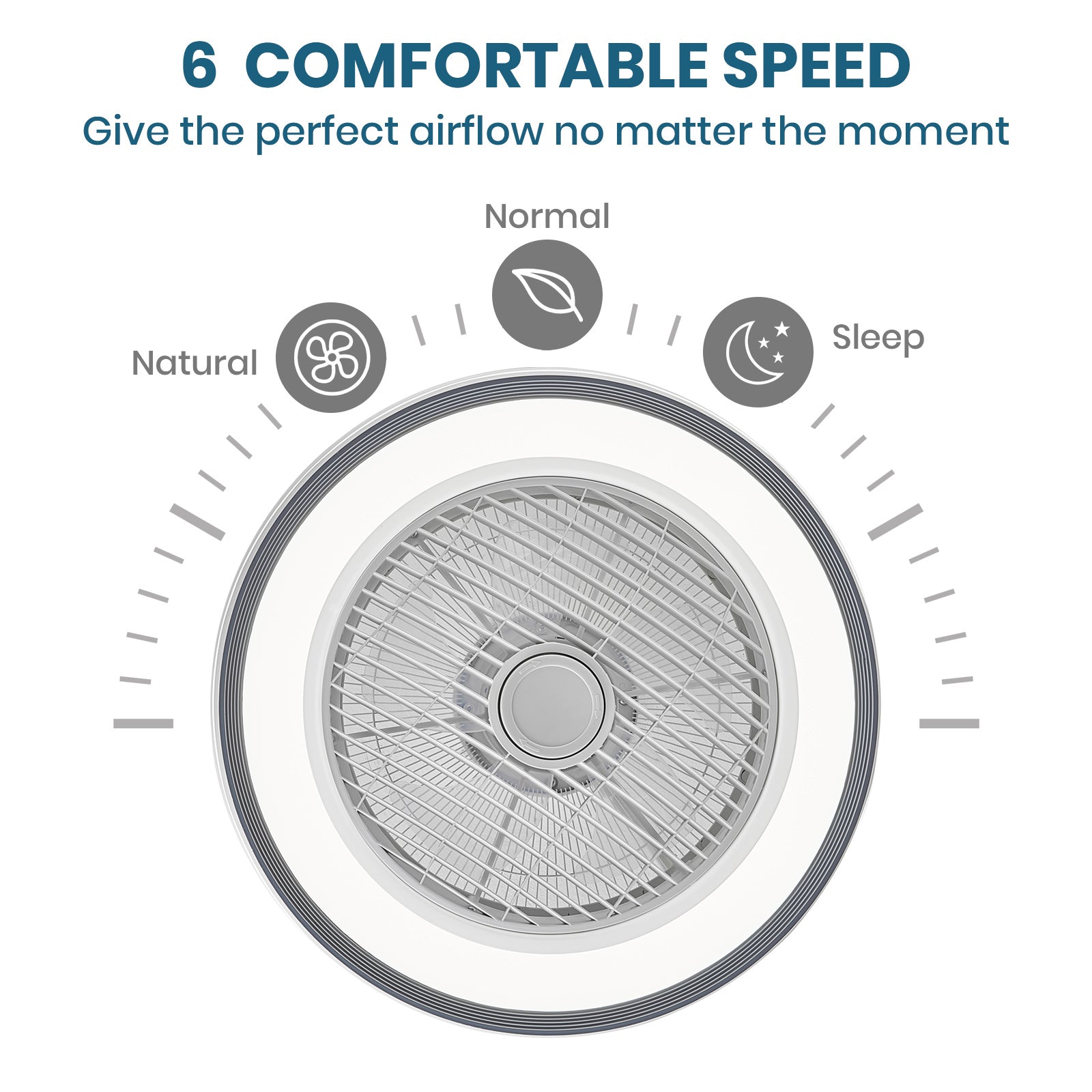 - 【Safe & Ultra Quiet】 The enclosed ceiling fan features a low profile, closed design, and uses a High-Quality Copper Motor that’s quiet and safe. And thoughtful timing suitable for kids and adults, just buy with confidence.