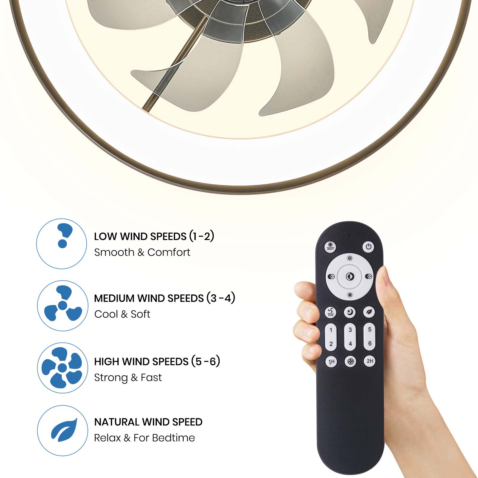 - 【FanLamp Pro App & Remote Control】: This smart led ceiling fan with lights is the ultimate in all-in-one control. With the ''FanLamp Pro'' App, you can easily control all of the functions of your flush mount ceiling fan with a remote or App. A wall-mount remote holder is included for you to place the remote, and easily find your remote when entering a room.
