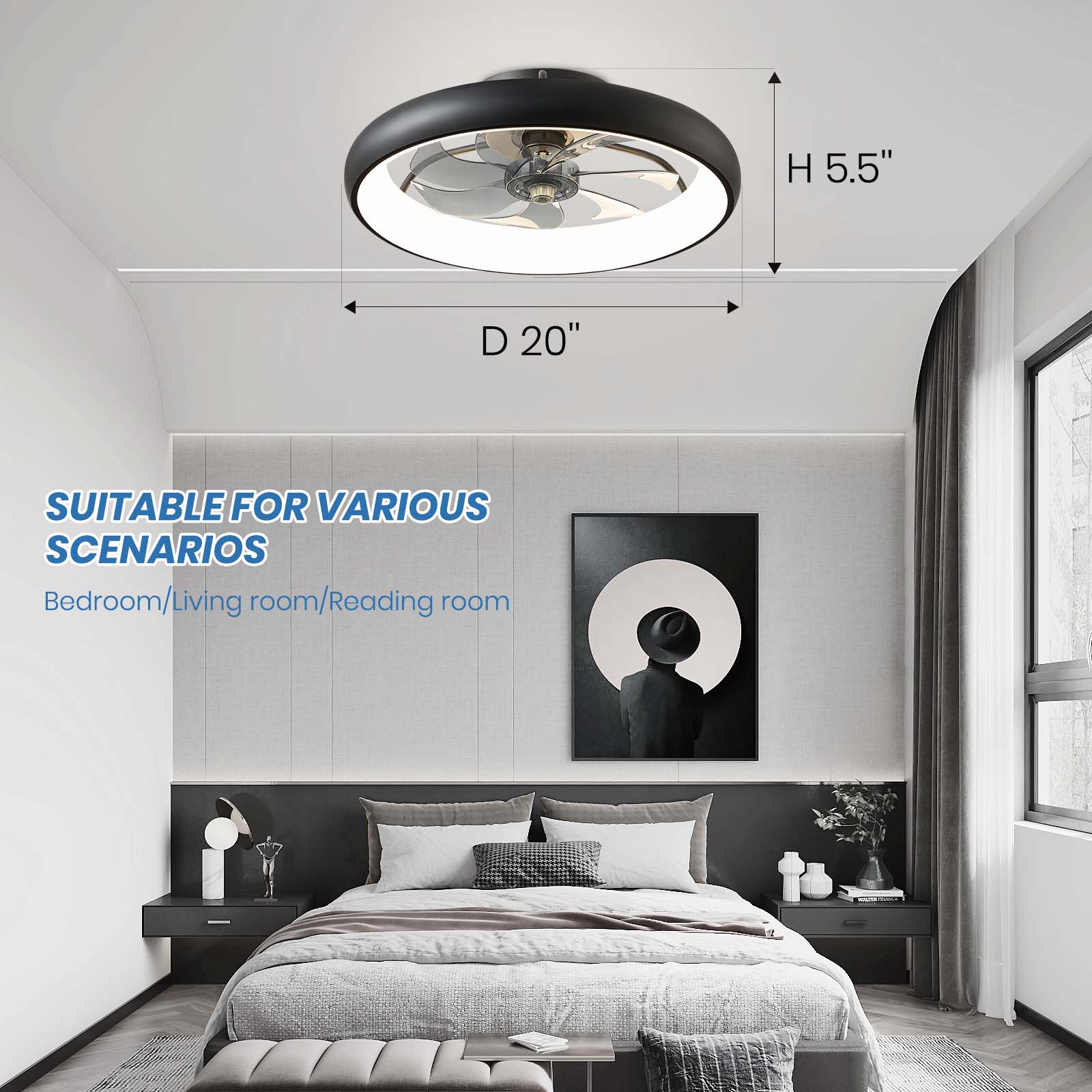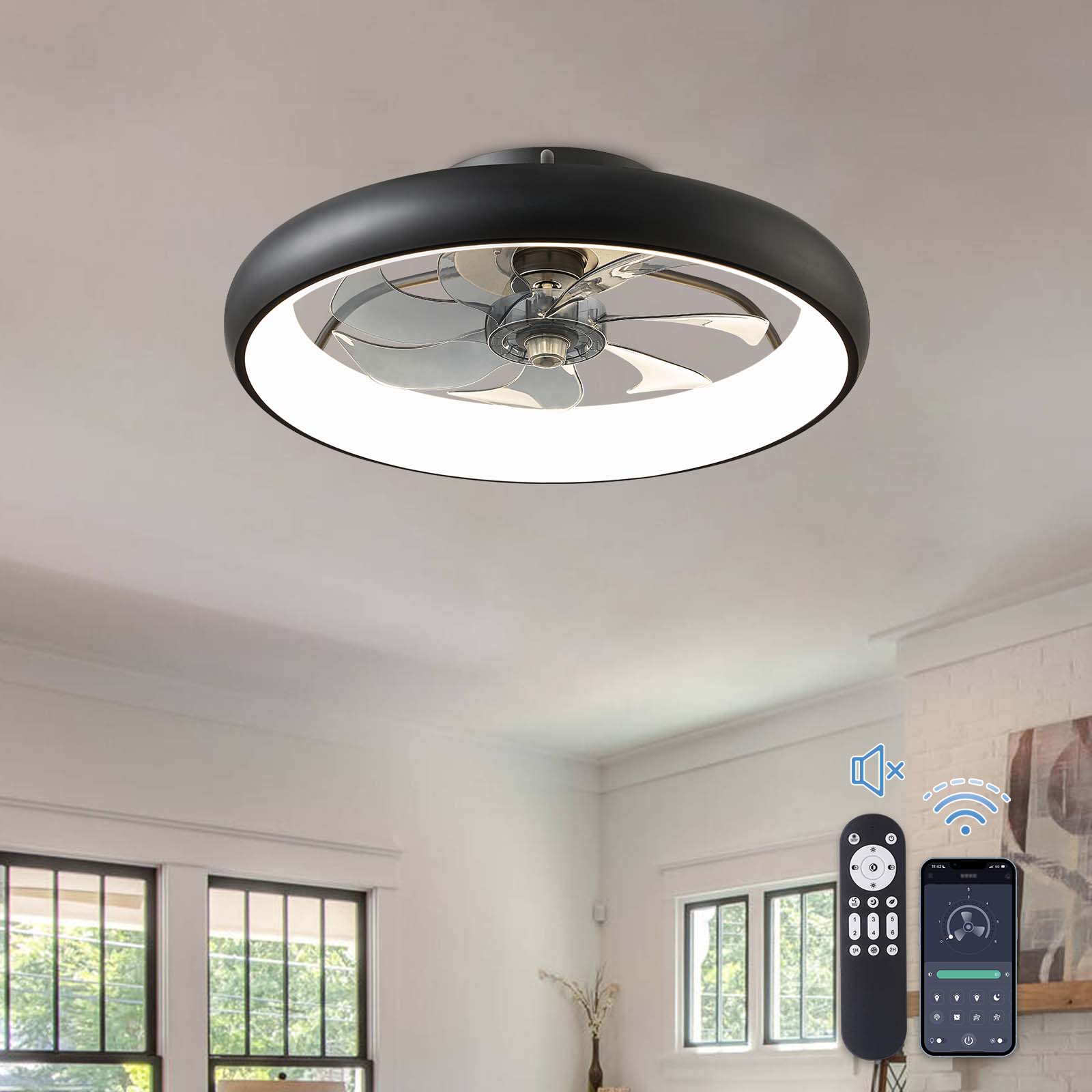 20" Flush Mount Ceiling Fan with Remote & APP Control