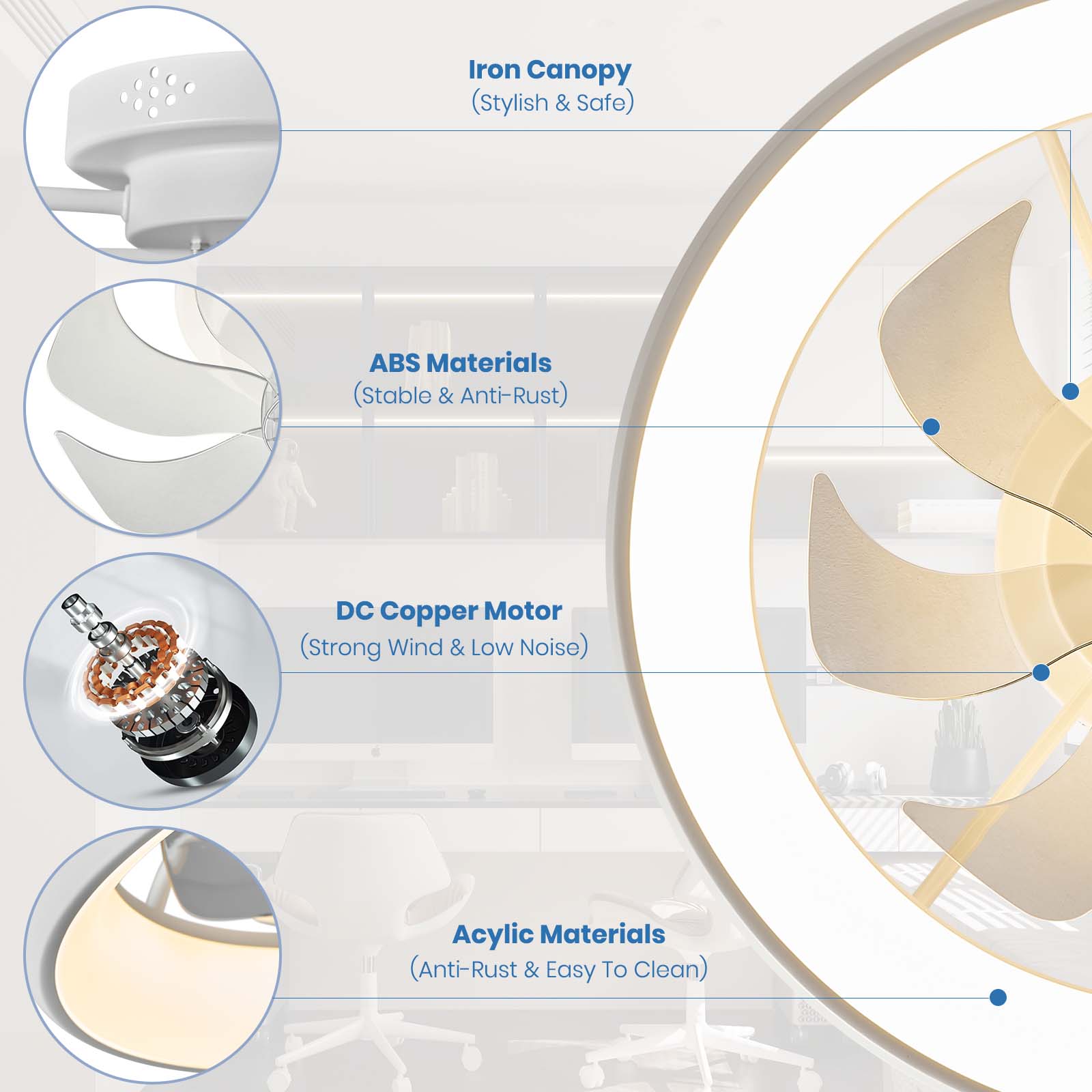 - 【Elegant and Modern Design】: Crafted from high-quality iron, ABS, and acrylic materials, this white flush mount ceiling fan is both durable and attractive. Our ceiling fan with lights boasts a sleek and stylish design that adds a touch of modern elegance to any room.