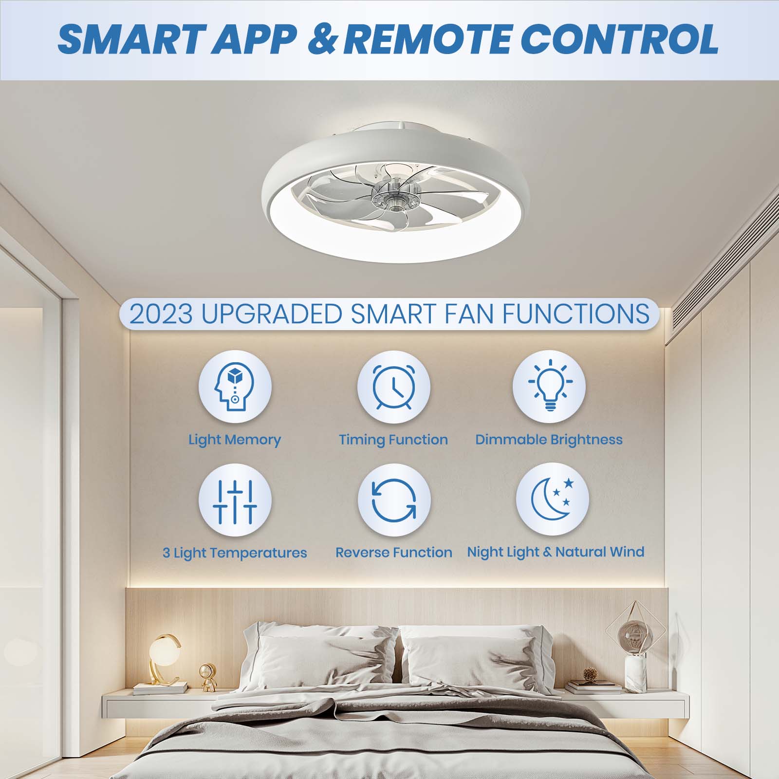 - 【Convenient App and Remote Control】: Easily control all functions using the remote or app, and this low profile ceiling fan will auto-save the brightness and color temperature when turning off the light by remote or app control, ensuring that your preferences remain unchanged when turning it back on.