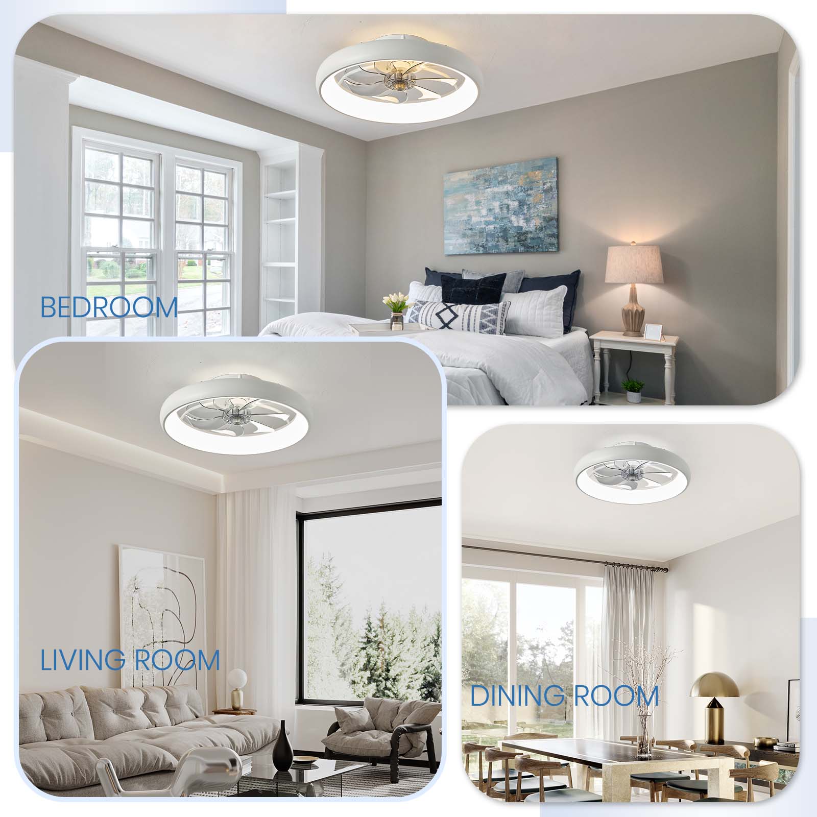 20'' White Low Profile Flush Mount Ceiling Fan with Lights