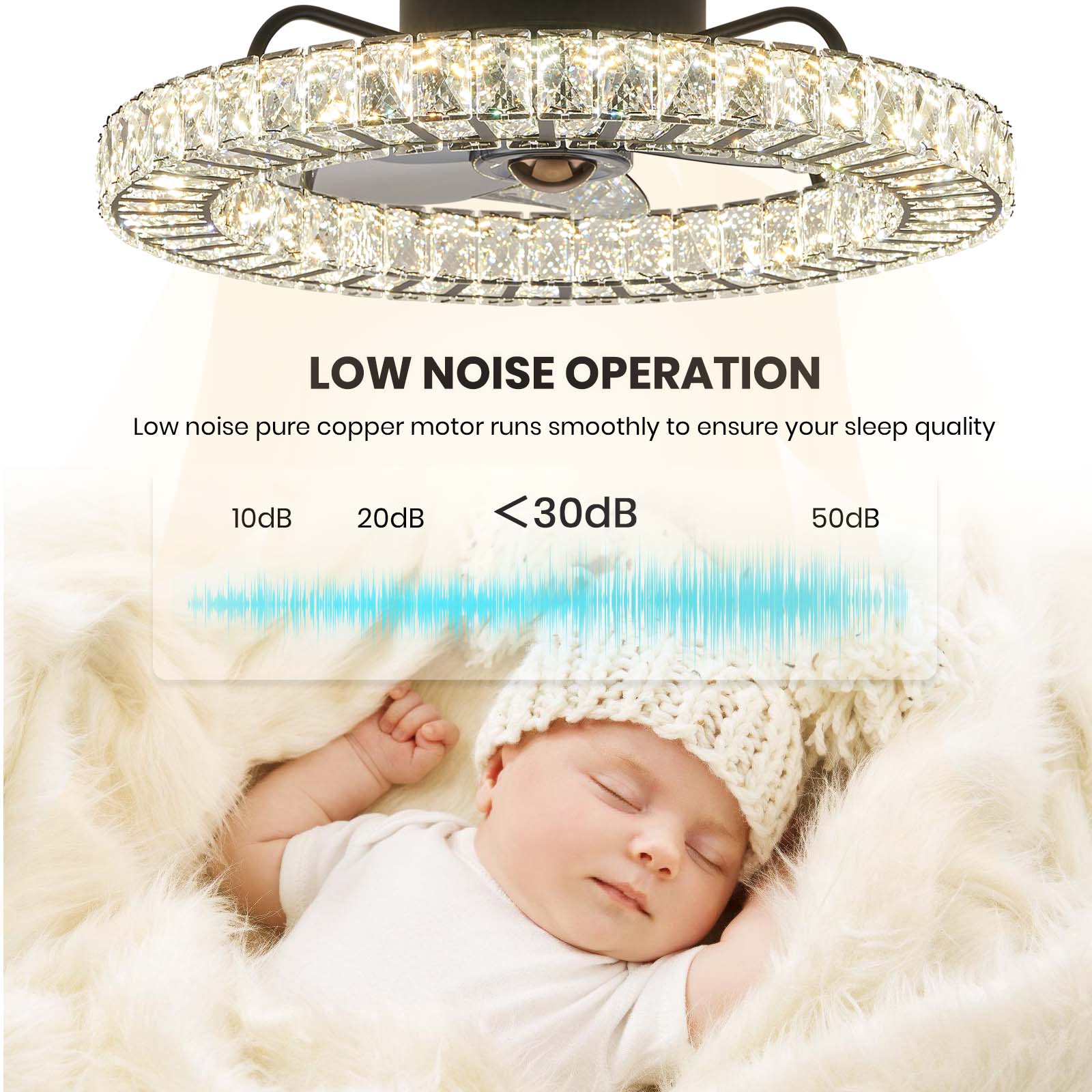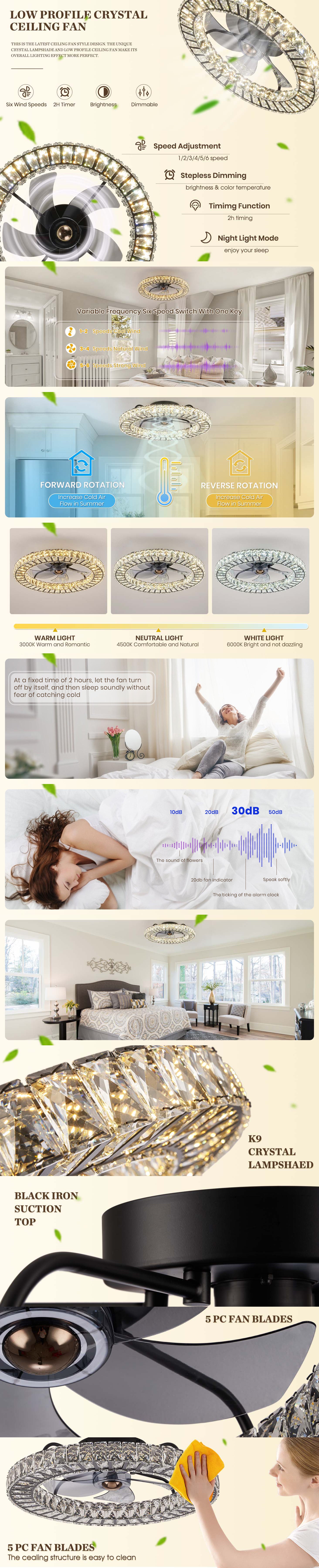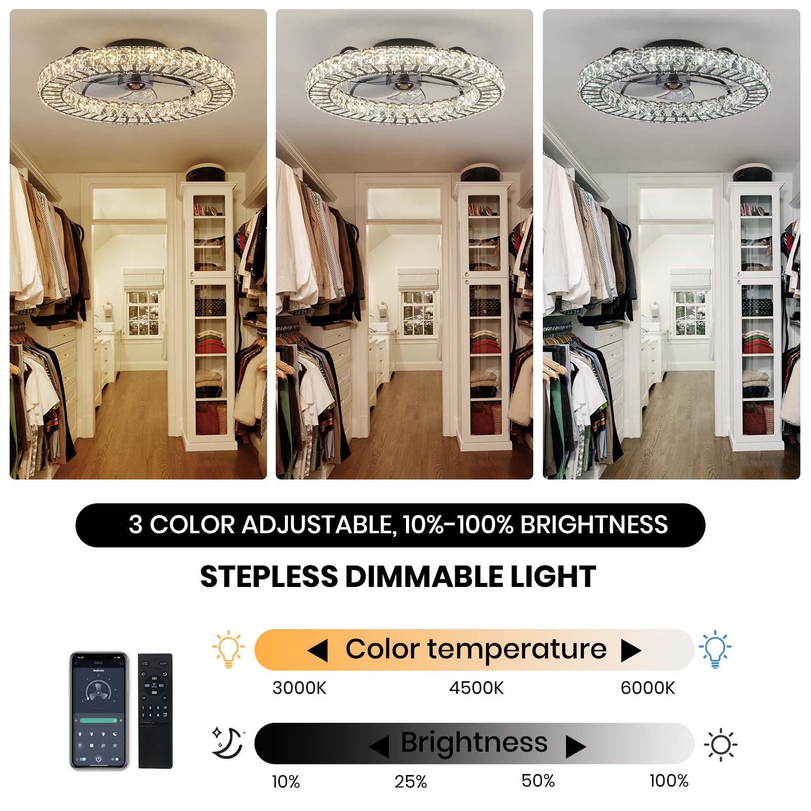 - Modern Ceiling Fan 2 in 1 design: Crystal ceiling fan combines the properties of a fan and crystal chandelier, paired with a 4-color dimming function, creating a colorful lighting effect that is excellent for use in any season.
