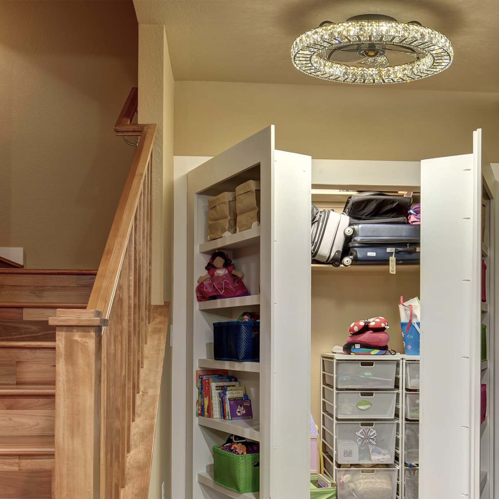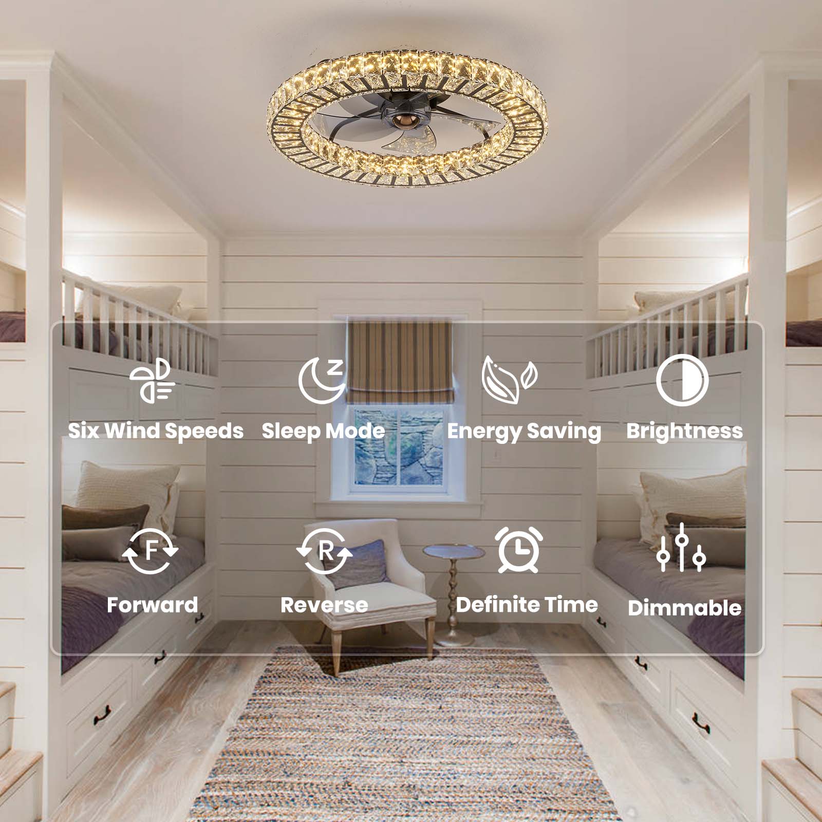 22" Modern Crystal Chandelier Ceiling Fan with Smart 4-Light Color Change